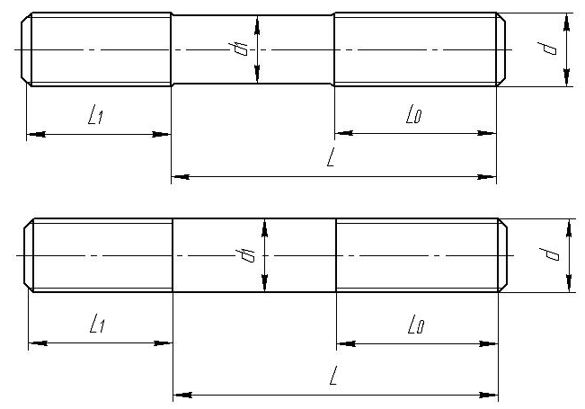 шпильки для деталей с гладкими отверстиями по ГОСТ 22042-76;